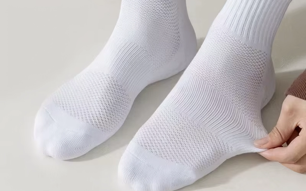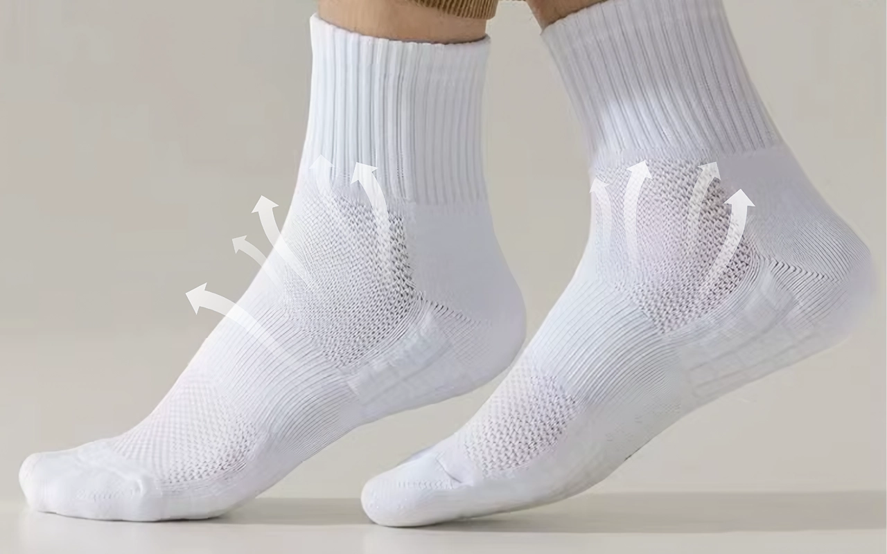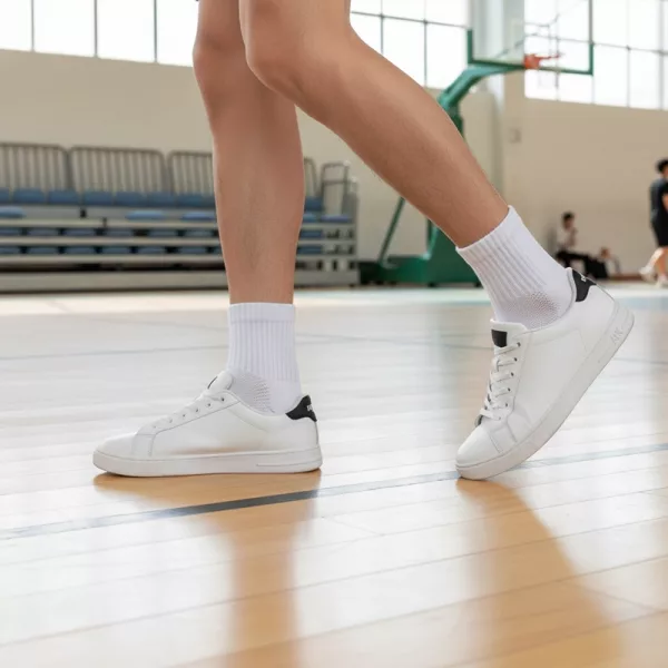 Elastiskt material förhindrar att strumpan glider, veckar sig eller klämmer, när som helst. Du får jämn komfort, även under snabba sporter eller promenader.