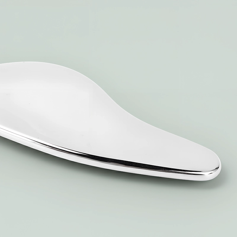 Mjuka rörelser lugnar trötta ansikten och minskar muskelspänning. Slätt rostfritt stål känns svalt och hjälper svullnad att försvinna. Lyft konturer samtidigt som huden får ett fastare, yngre utseende.
