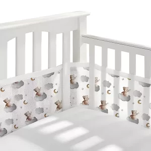 Vår spjälsängsfoder är lämplig för en rad olika spjälsängsstorlekar. Det kan justeras efter behov, vilket säkerställer en perfekt passform för din bebis säng.