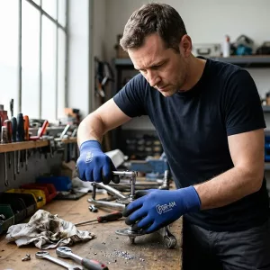 Jag använder dem när jag reparerar cyklar i förrådet. Fett och olja gör inte att verktygen glider ur händerna. Det flexibla materialet låter mig jobba enkelt med små bultar.