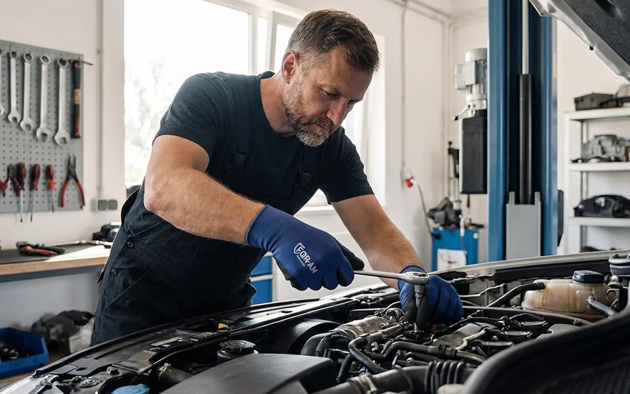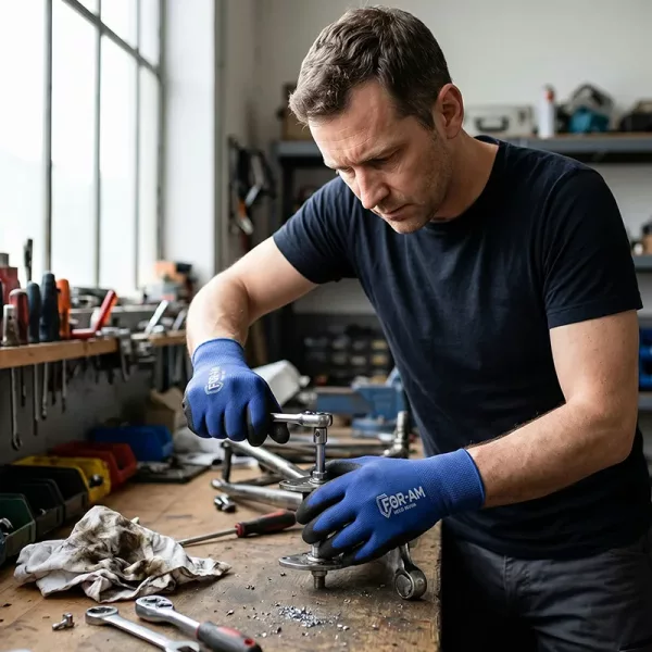 Jag använder dem i garaget varje kväll. Beläggningen greppar verktygen så de inte halkar, och ovansidan släpper in luft. Mina fingrar böjs lätt för små skruvar.