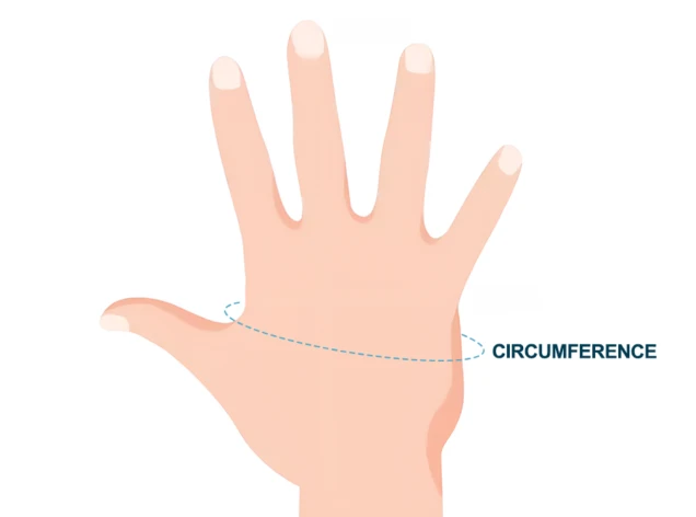 - 1. Linda måttbandet runt din handflata, precis under knogarna.
