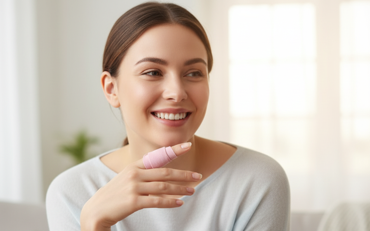 Jag har en i väskan till jobbet och den känns alltid fräsch. Materialet är skonsamt mot min hud och håller mitt finger rakt utan att göra ont.