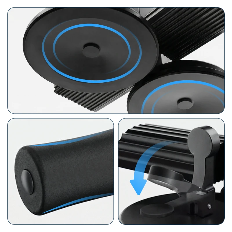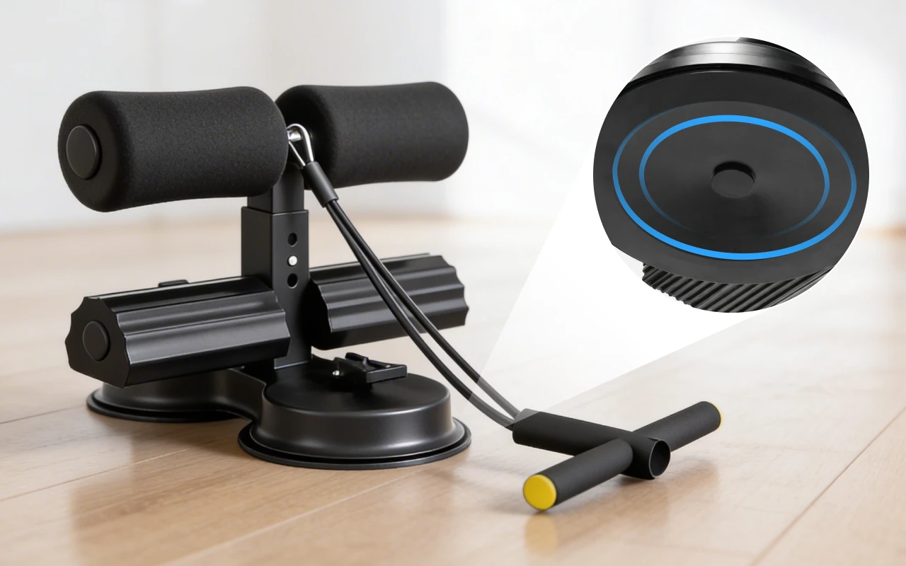 Kraftig sugfunktion håller enheten fast på släta golv. Varje rörelse känns stabil, vilket gör träningen säkrare varje dag.