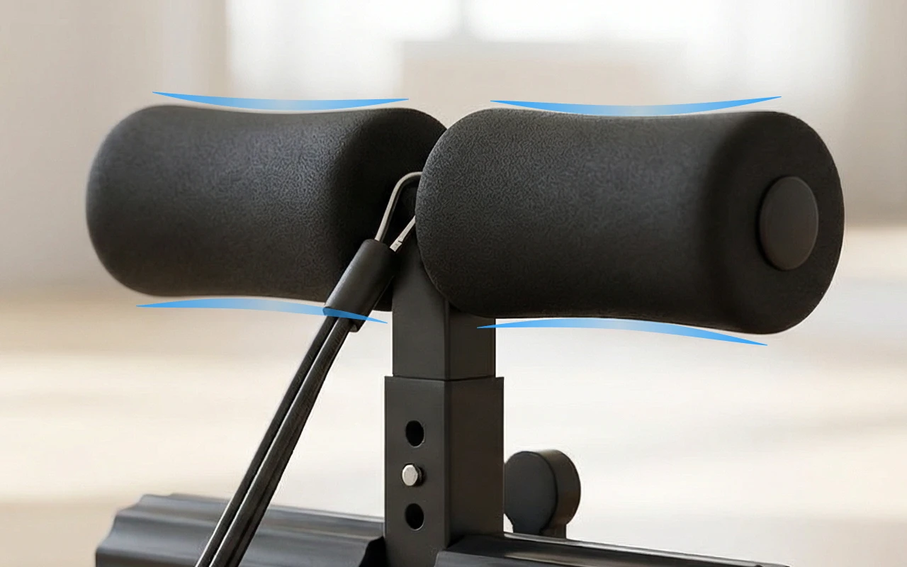 Skumkuddarna känns mjuka men stöttande mot mina beniga anklar. Jag kan äntligen göra situps utan att stapla handdukar eller be min fru hålla i fötterna.