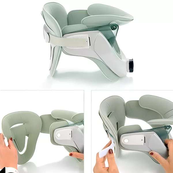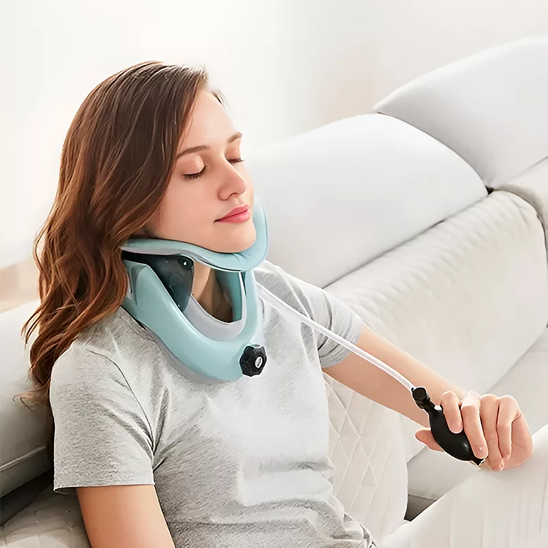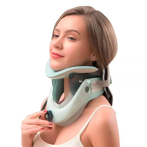Att bära denna traktionskrage har hjälpt min nackspänning så mycket! Den lätta designen gör min dag enklare och hjälper mig hålla balansen i hållningen.