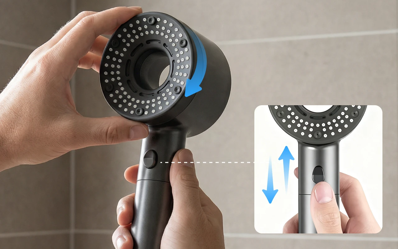 Byt läge eller pausa flödet med ett enkelt rörelse. Alla kan hitta sin perfekta inställning på några sekunder med Ortorex duschhuvud.