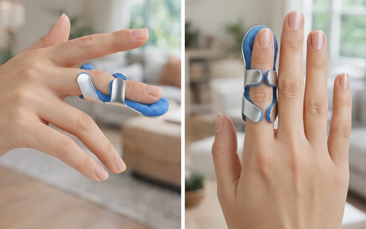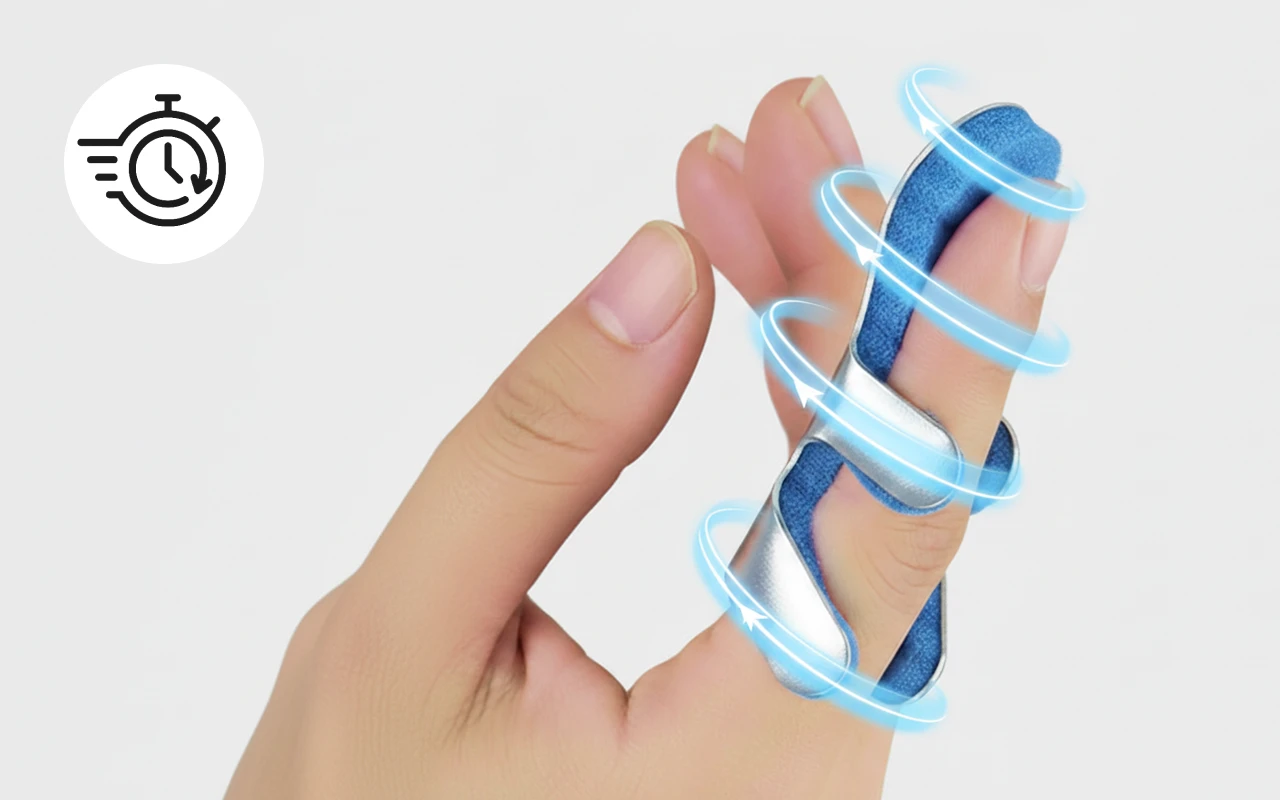 Aluminiumplattan håller skadade leder stadiga för snabbare läkning. Ingen glidning eller förskjutning innebär att ditt finger förblir skyddat.