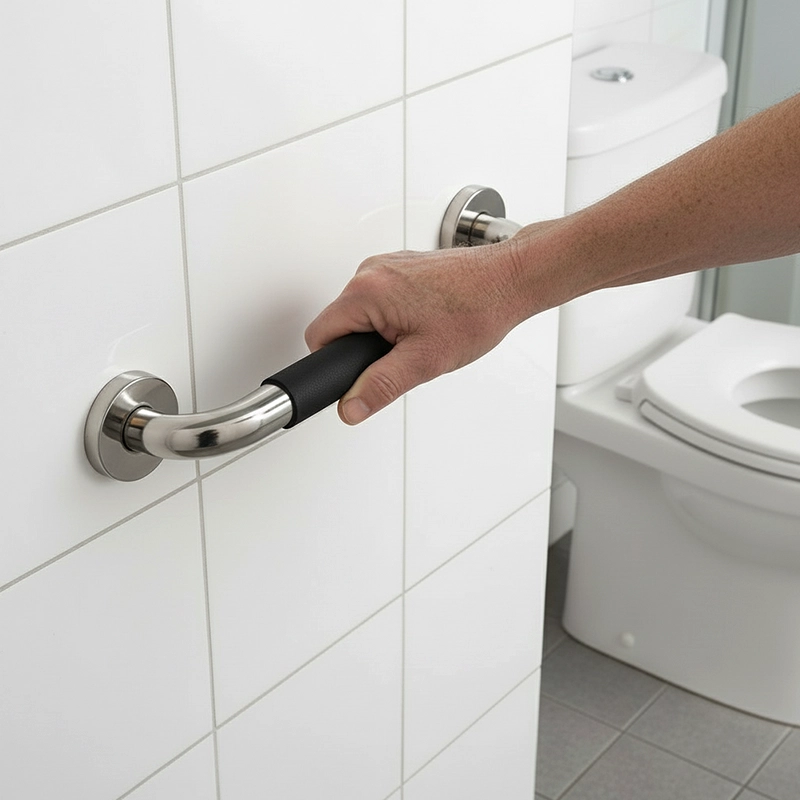 Jag älskar hur det här handtaget ser ut i badrummet. Installationen var enkel, och nu känner jag mig mer trygg varje gång jag badar.
