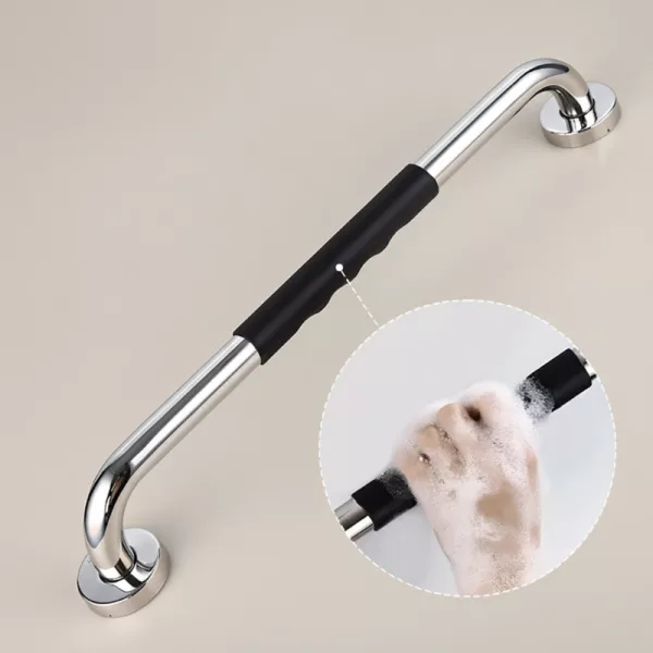 Den här stångens silikon-del gör att mina händer inte halkar. Dessutom ser den inte malplacerad ut i vårt badrum alls.