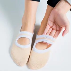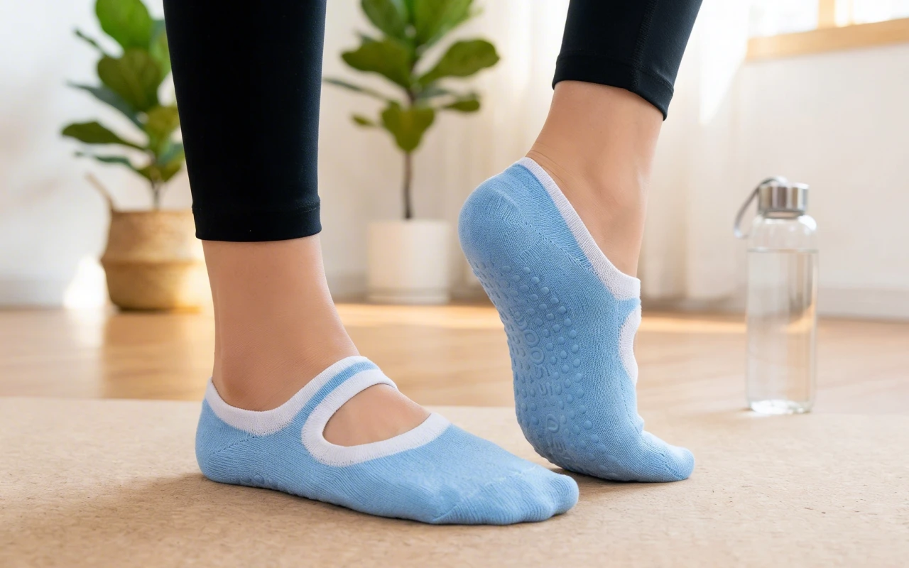 Dessa bomullsstrumpor med grepp funkar både till yogapasset och när jag slappar i soffan. Mina fötter känns stöttade men ändå fria, och det blir ingen svettlukt ens efter långa pass.
