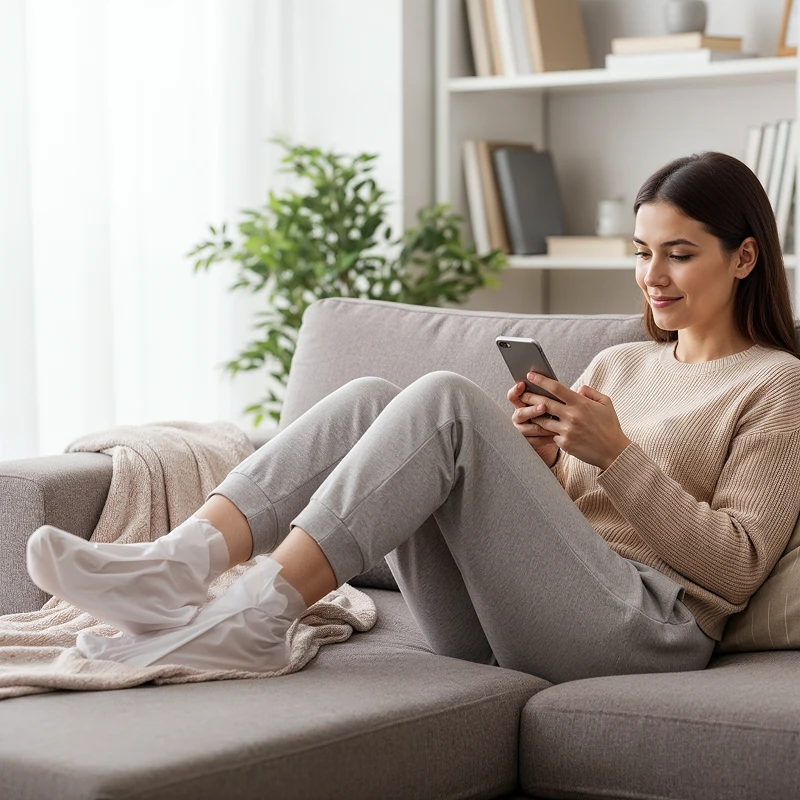 Ta på dig Ortorex fotmaskstrumpor och fortsätt med dina dagliga sysslor utan problem. Ingen hård skrubbning eller salongsbesök behövs för skonsam förnyelse hemma.