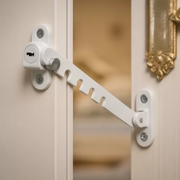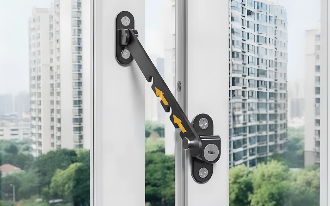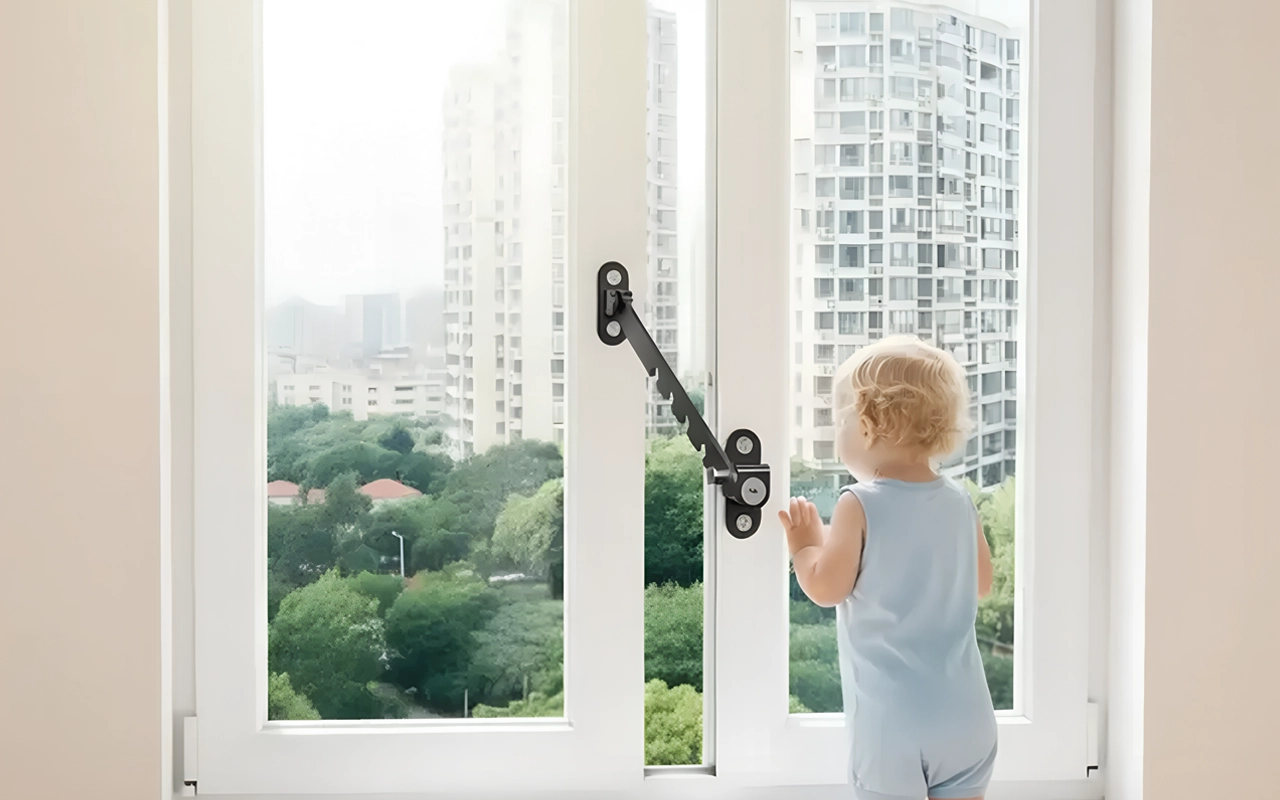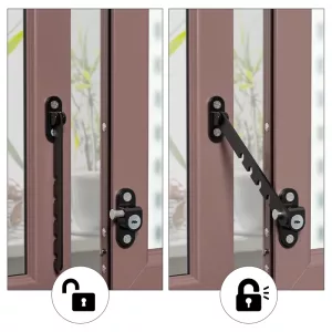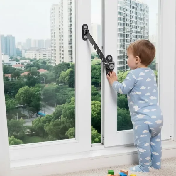 Håller våra barn säkra från att ramla ut genom fönstret. Jag kan fortfarande öppna lite för att släppa in luft, vilket är toppen på sommaren. Stabil och säker mekanism.
