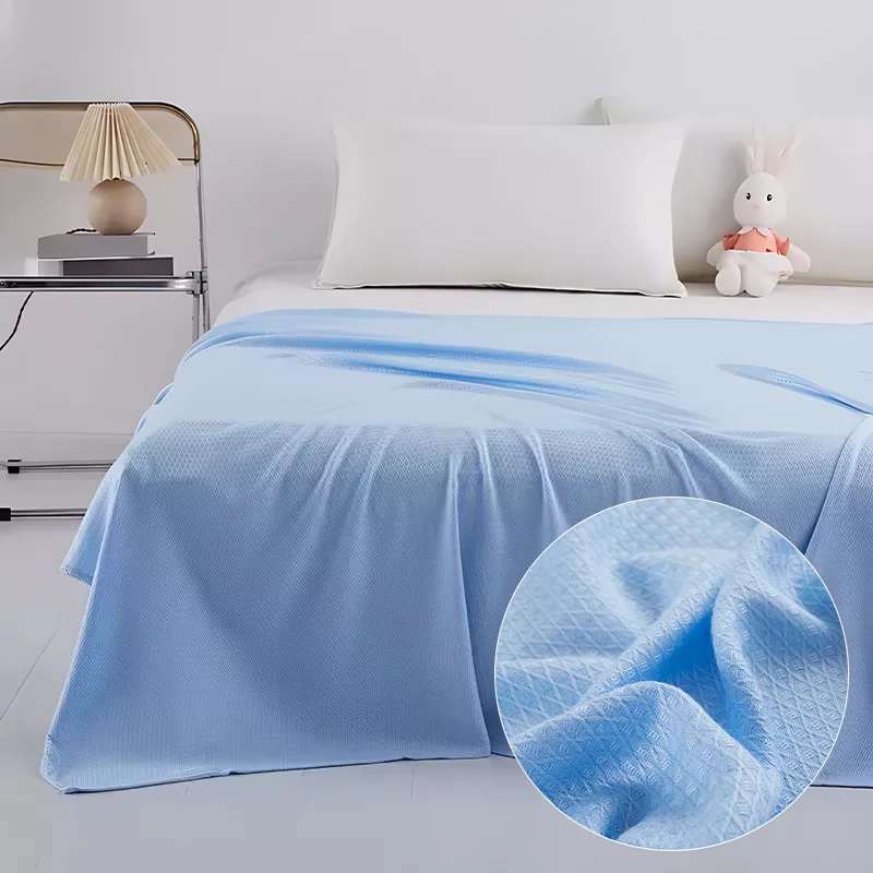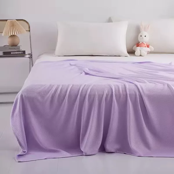 Texturen är supermjuk, perfekt för min känsliga hud. Jag älskar att mysa med denna lätta filt – den är mysig men aldrig tung.