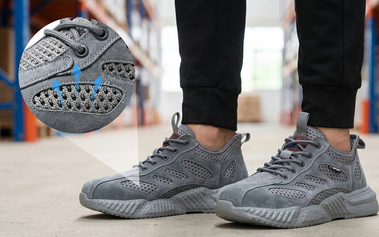 Jag köpte dessa som sneakers för lagerarbete. Luftflödet är toppen, mina tår känns skyddade när jag flyttar tunga lådor och de böjer sig naturligt när jag hukar eller klättrar.