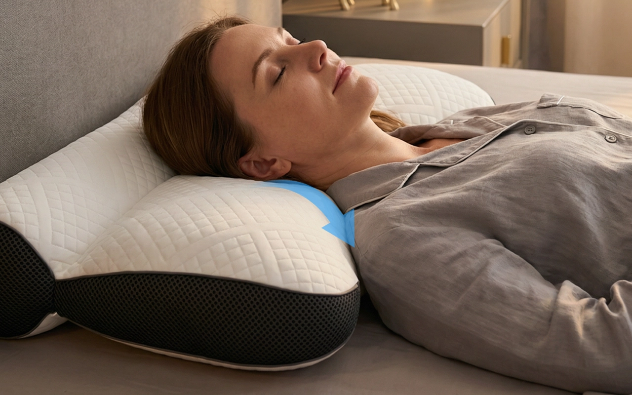 Jag var skeptisk, men den här nackkudden ställer faktiskt in huvud och nacke i rätt linje. Jag somnar snabbare och vaknar inte längre av att jag vrider och vänder mig.