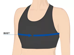 - 2. För att hitta bystmåttet, linda måttbandet runt den fylligaste delen av bysten. Se till att hålla måttbandet horisontellt. Håll det stadigt, men inte för hårt.