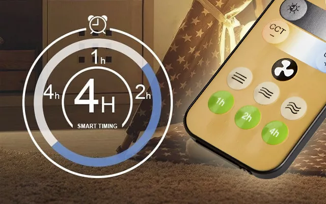 Ortorex takfläkt fyller rummet med stark belysning. Du kan välja önskat ljus och justera ljusstyrkan.