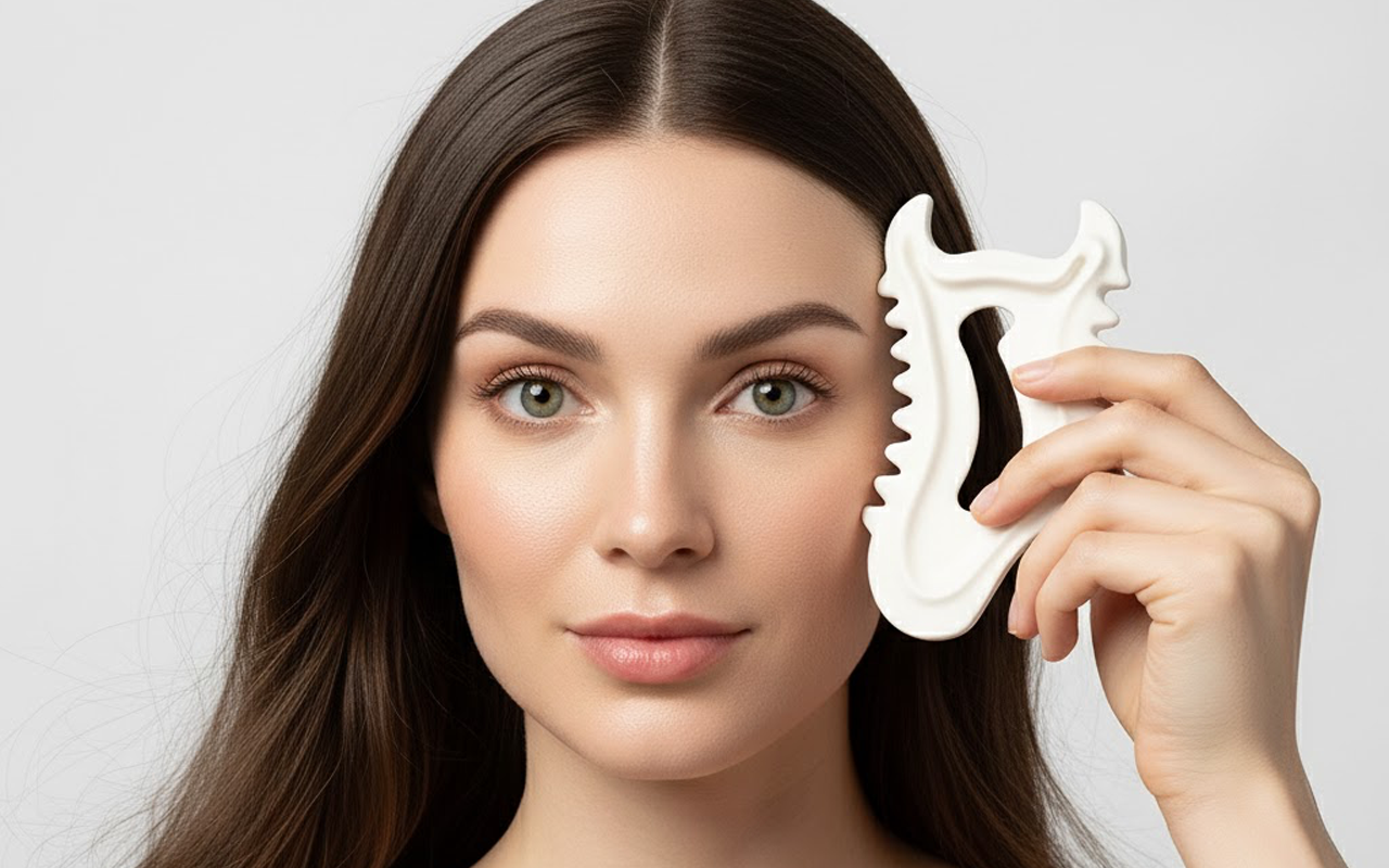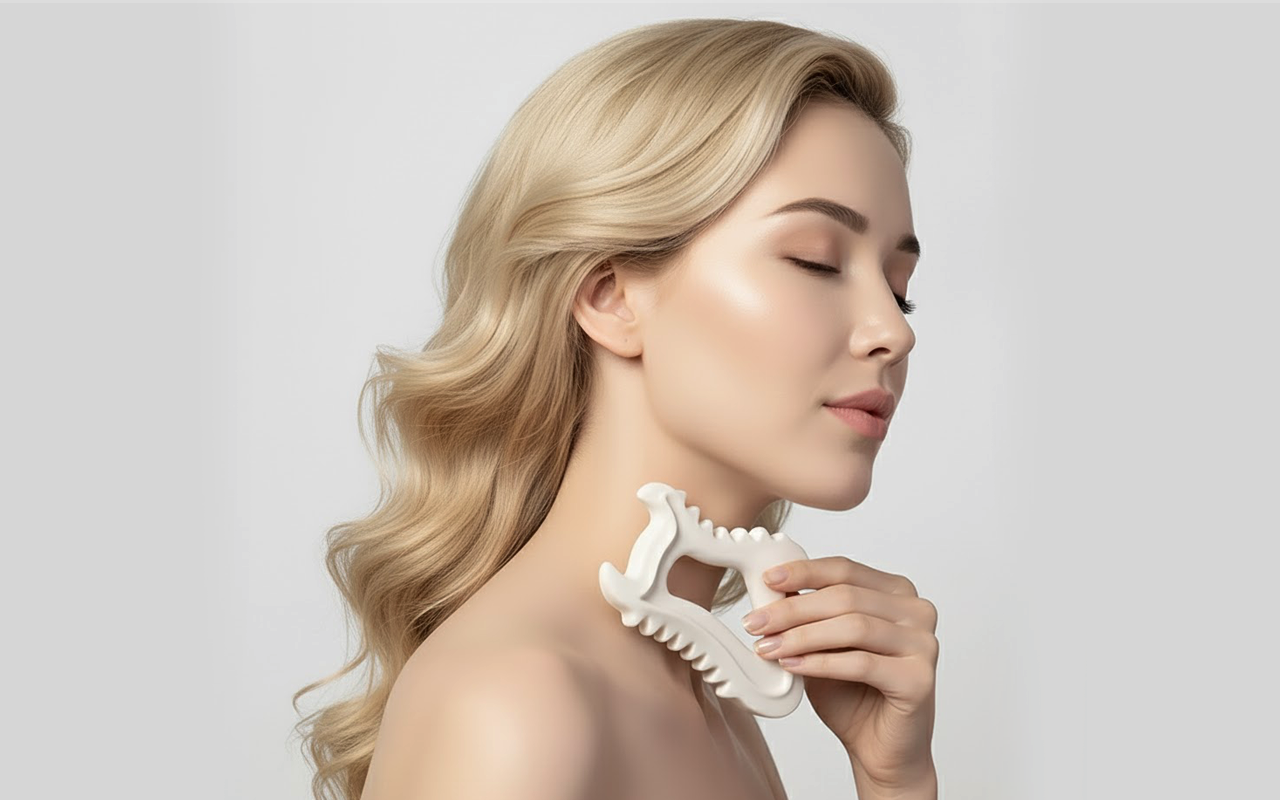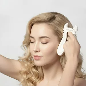 Gua sha gör att mitt ansikte ser strålande och friskt ut utan mycket ansträngning. Keramiken känns sval i början, vilket är väldigt lugnande.