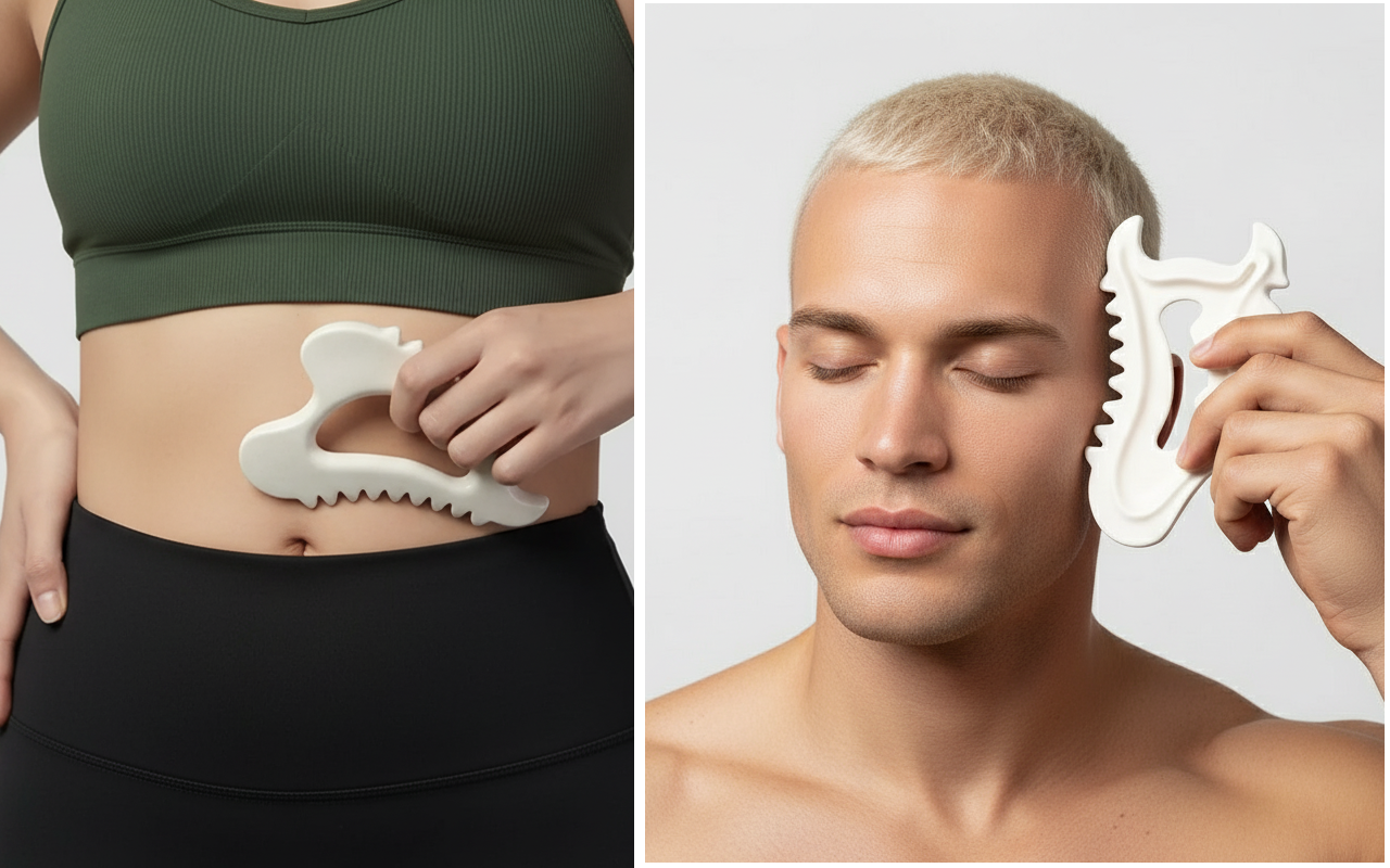 Lindra vardagsspänningar med Ortorex gua sha-verktyget över hela kroppen. Skonsam skrapning lugnar musklerna och ökar blodcirkulationen snabbt. Slät keramik glider enkelt över huden och orsakar aldrig obehag. Den kompakta formen ligger perfekt i handflatan för enkel användning.