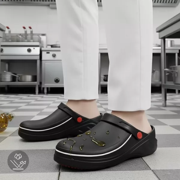 Dessa köksskor är så bekväma även efter ett dubbelpass. Mina fötter gör inte alls ont och jag älskar hur lätta de är att rengöra.