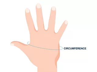 - Vira måttbandet runt handflatan, precis under knogarna.