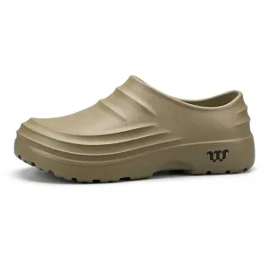Jag är en stor kille och brukar mosa lätta skor. Dessa tofflor klarar min vikt, dämpar hälarna och håller gräsklipp borta. Greppet på våt gräsmatta är utmärkt.