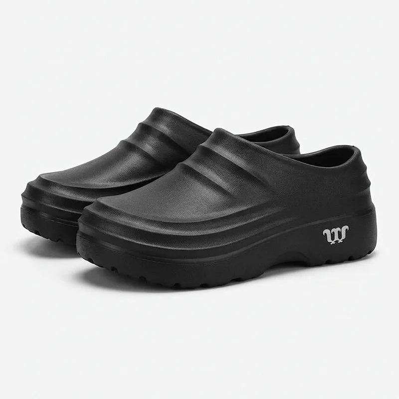 Jag använder de här tofflorna när jag tvättar bilen och klipper gräset. Greppet på våt betong är stabilt, hålfoten känns stöttad och fötterna håller sig torra och bekväma.