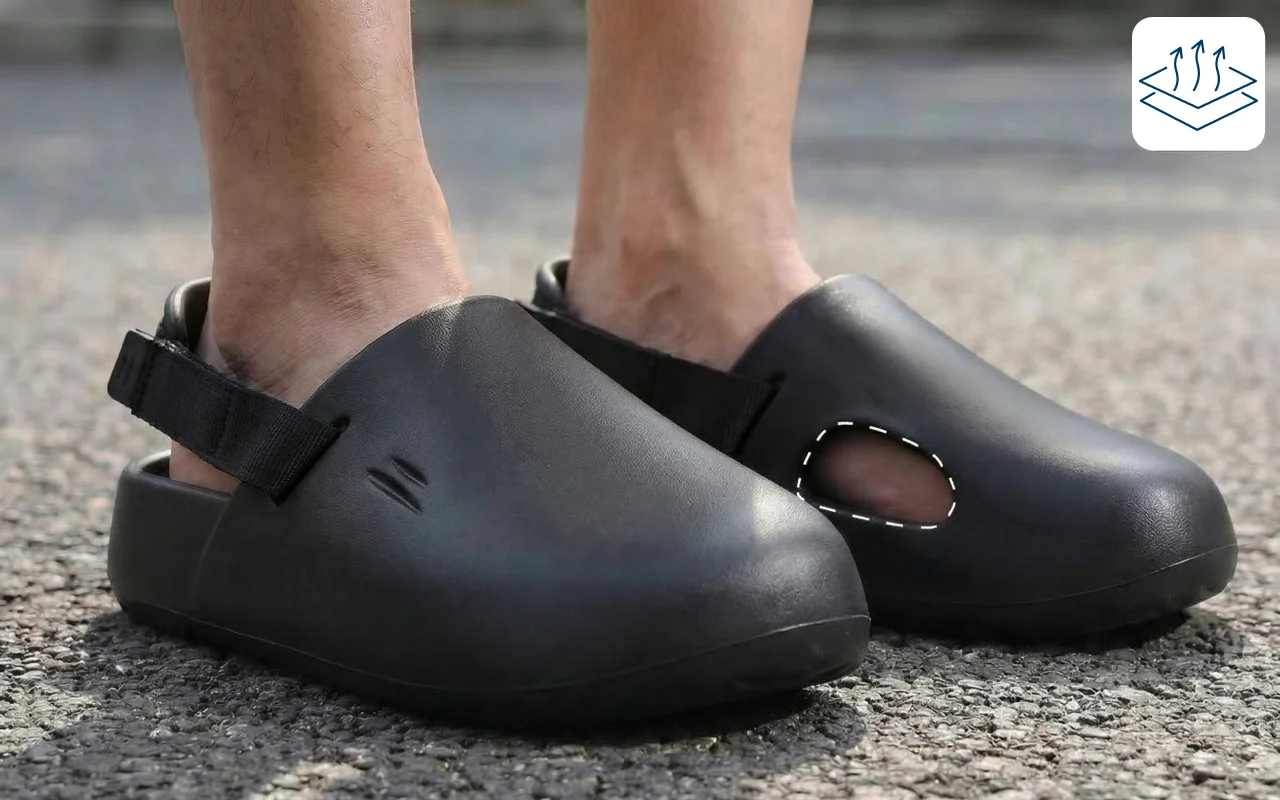 Njut av frisk luft medan dina fötter känns avslappnade och skyddade. Ortorex-tofflor ger långvarigt stöd i timmar utan att göra ont i tårna. Flexibelt hälband håller dig säker när du går vid alla utomhusaktiviteter. Utformade för stabilitet känns varje steg lätt och enkelt.