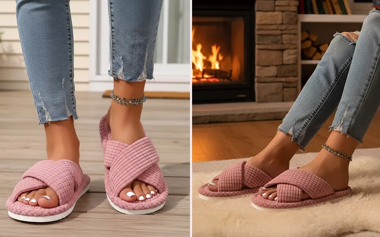 Dessa innetofflor är riktigt fina! Den öppna tådelen håller fötterna svala och de känns som små moln under fötterna.