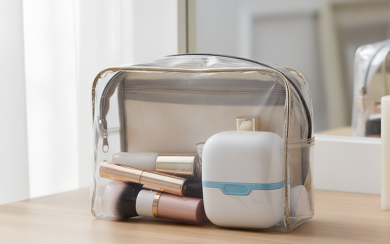 Jag förvarar isrollern i en liten väska när jag reser. Efter flygningar drar jag den över mitt trötta ansikte och den stramar upp allt så fint.