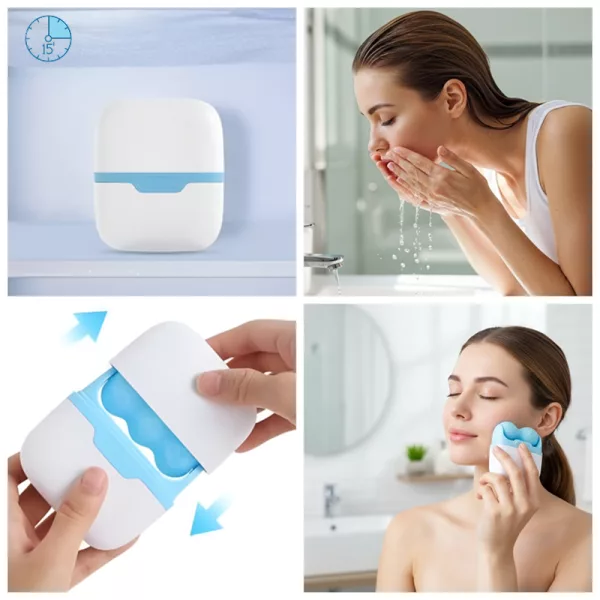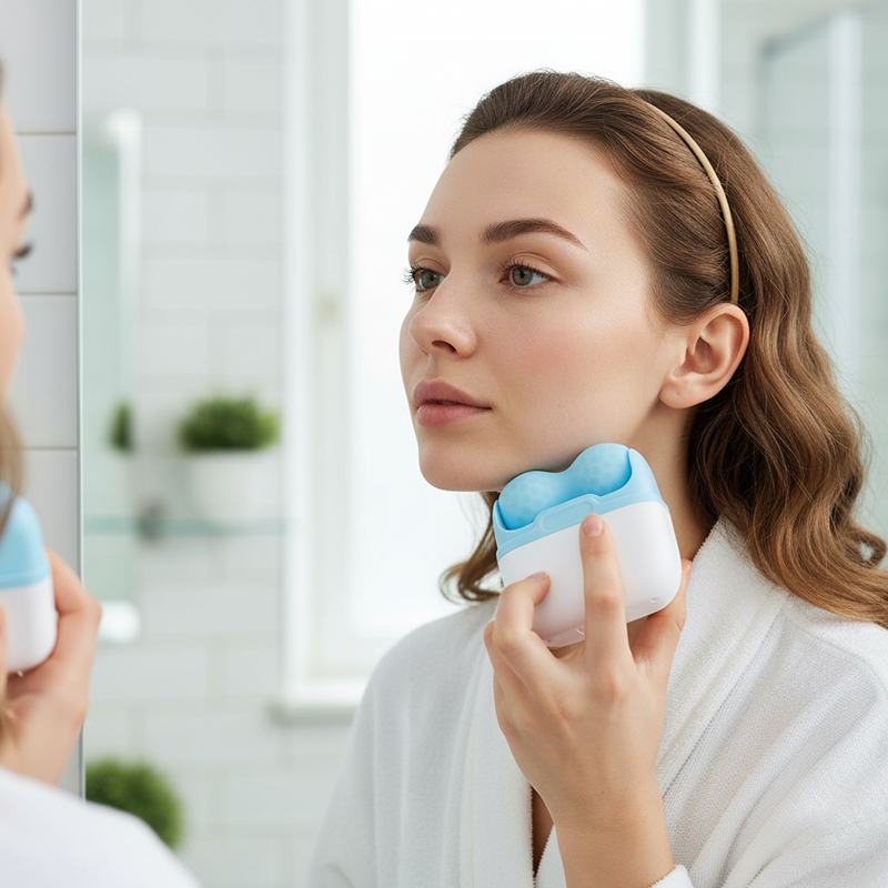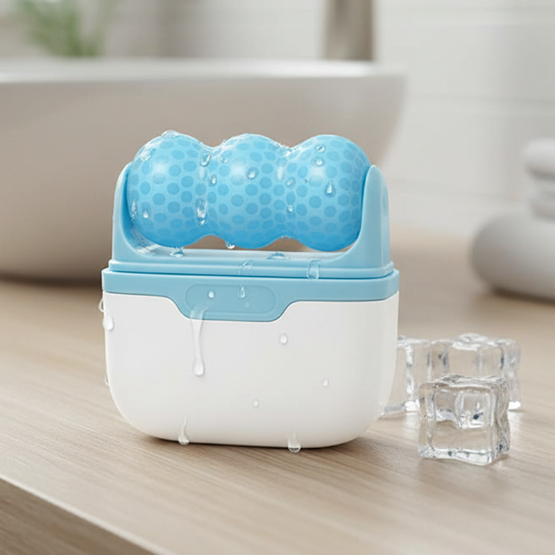 Jag förvarar den här lilla isrollern i kylskåpet och använder den varje morgon. Mina svullna kinder går ner snabbt och mitt smink sitter bättre.