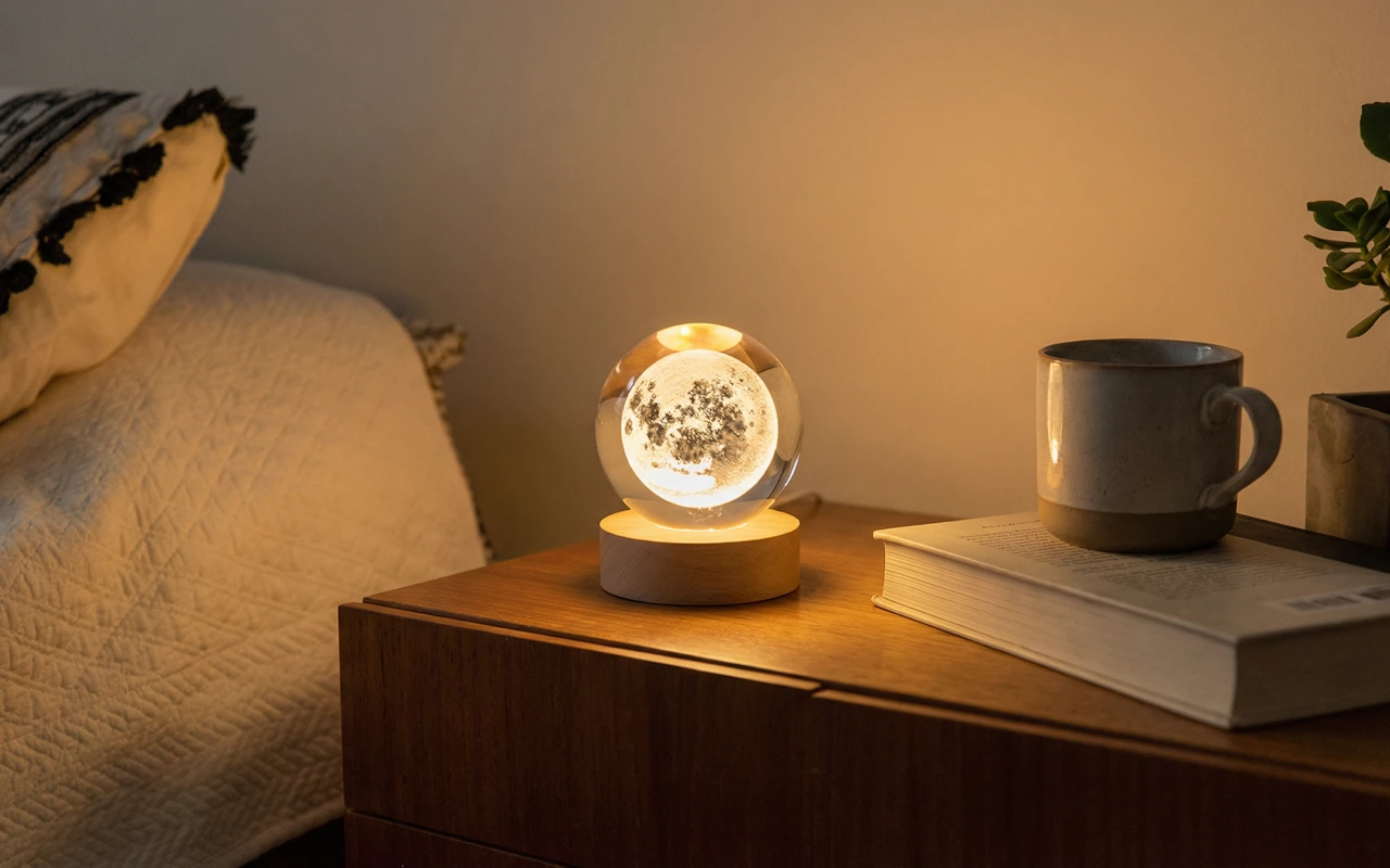 Köpte kristallbollslampan till min tonårsdotter. Hon har den tänd varje natt och säger att den får hennes rum att kännas drömskt och tryggt.