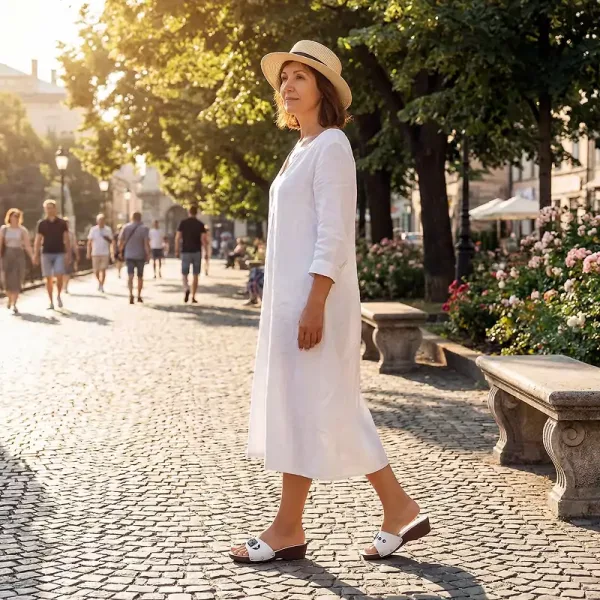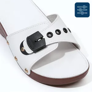 Känn dig lätt på fötterna under soliga dagar utomhus. Njut av tryggheten i att veta att dina skor alltid ser fina och stiliga ut. Ortorex kilklackssandaler matchar enkelt alla sommaroutfits. Ta på dem snabbt och håll dig bekväm hela dagen.