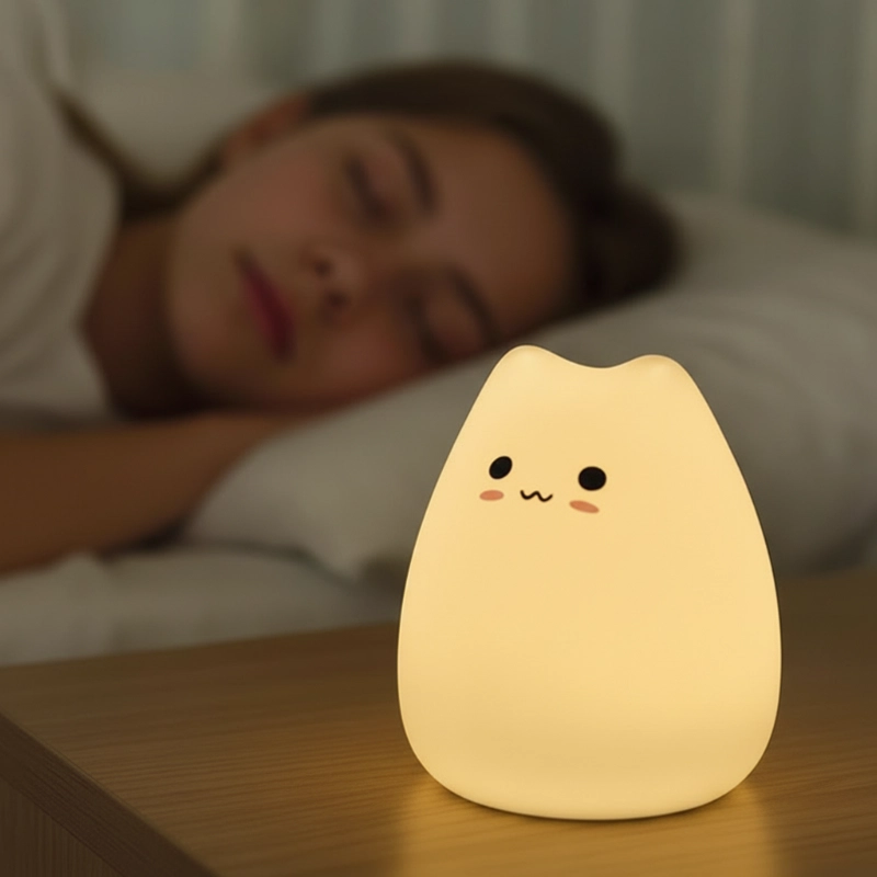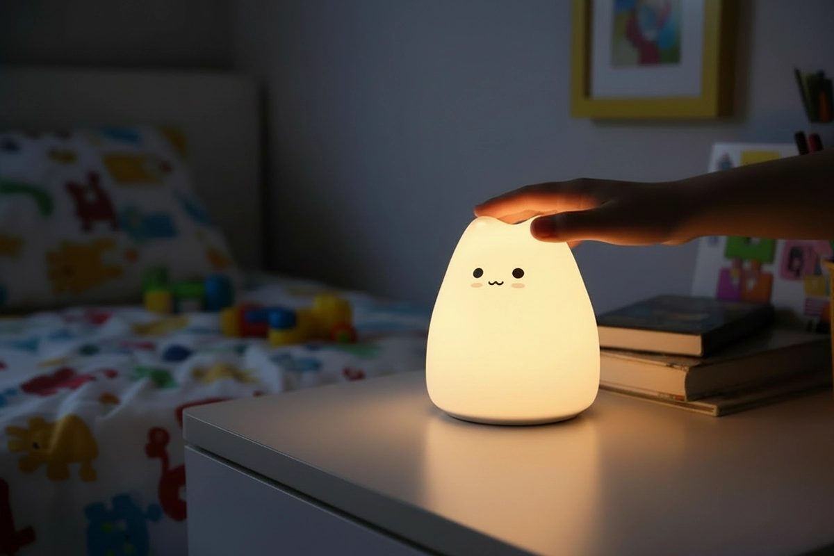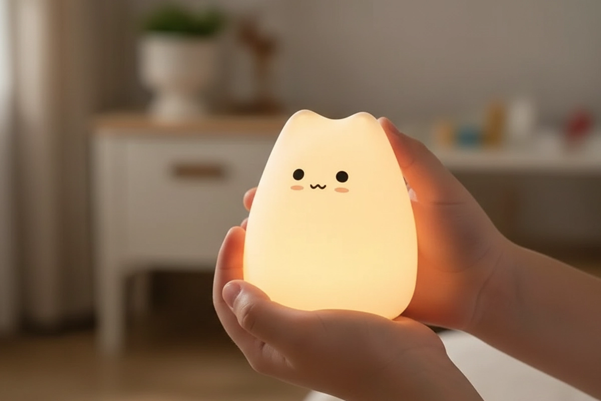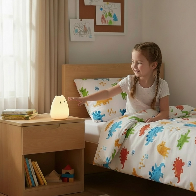 Silikonet känns så mjukt, till och med mitt småbarn kan hålla i den. Inga hårda kanter, och det dämpade ljuset gör hennes rum mysigt hela natten.