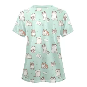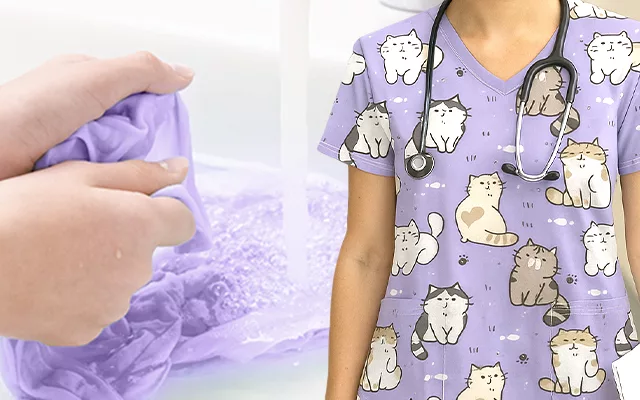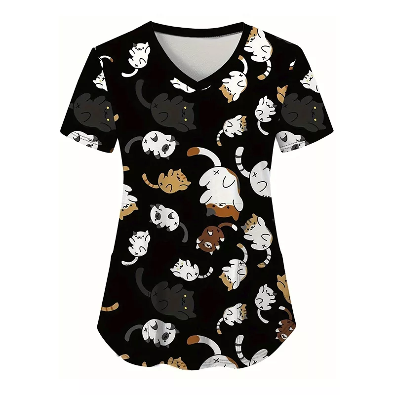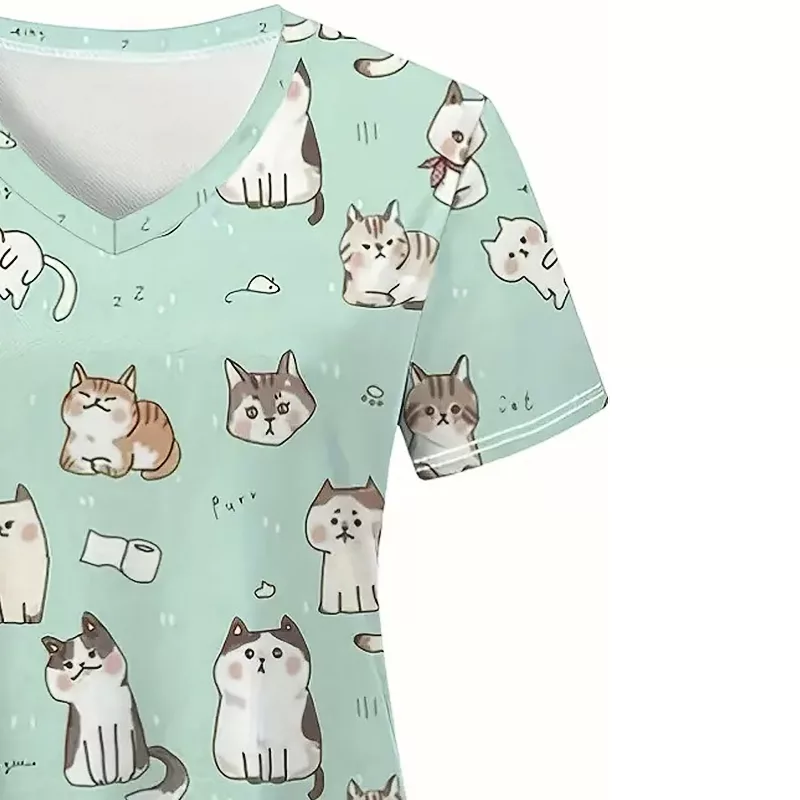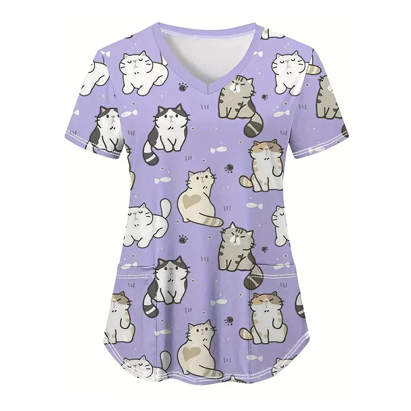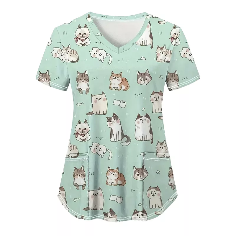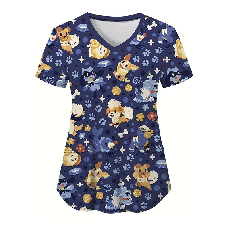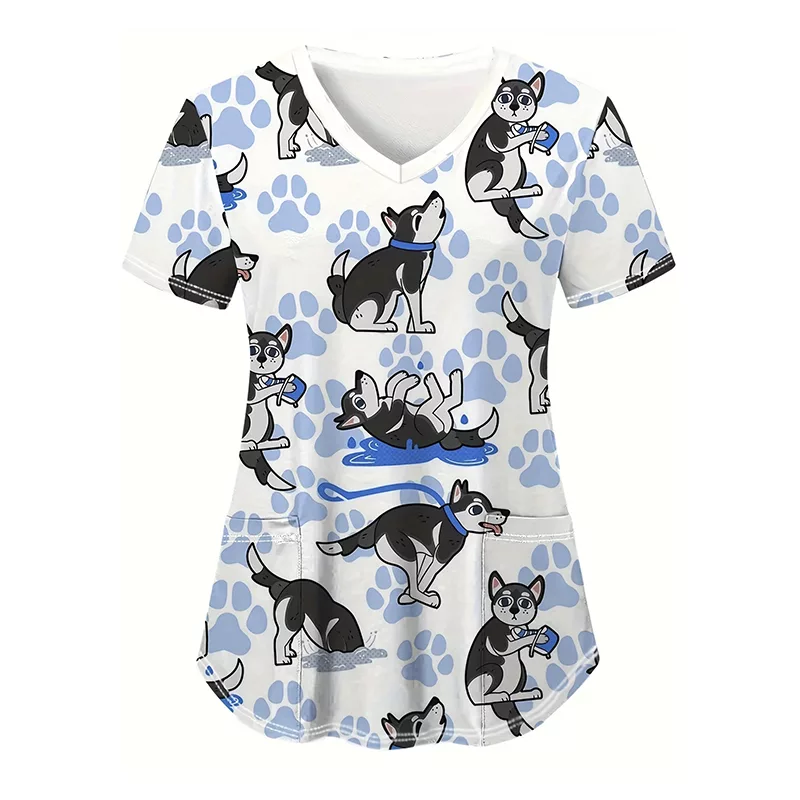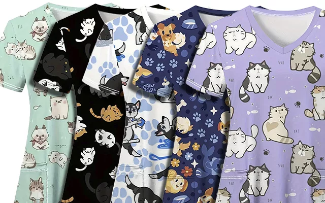 Jag älskar hur bekväm den här vårdtröjan är hela dagen! Valpmönstret får alltid komplimanger från kollegor och det är lätt att tvätta efter ett långt arbetspass.