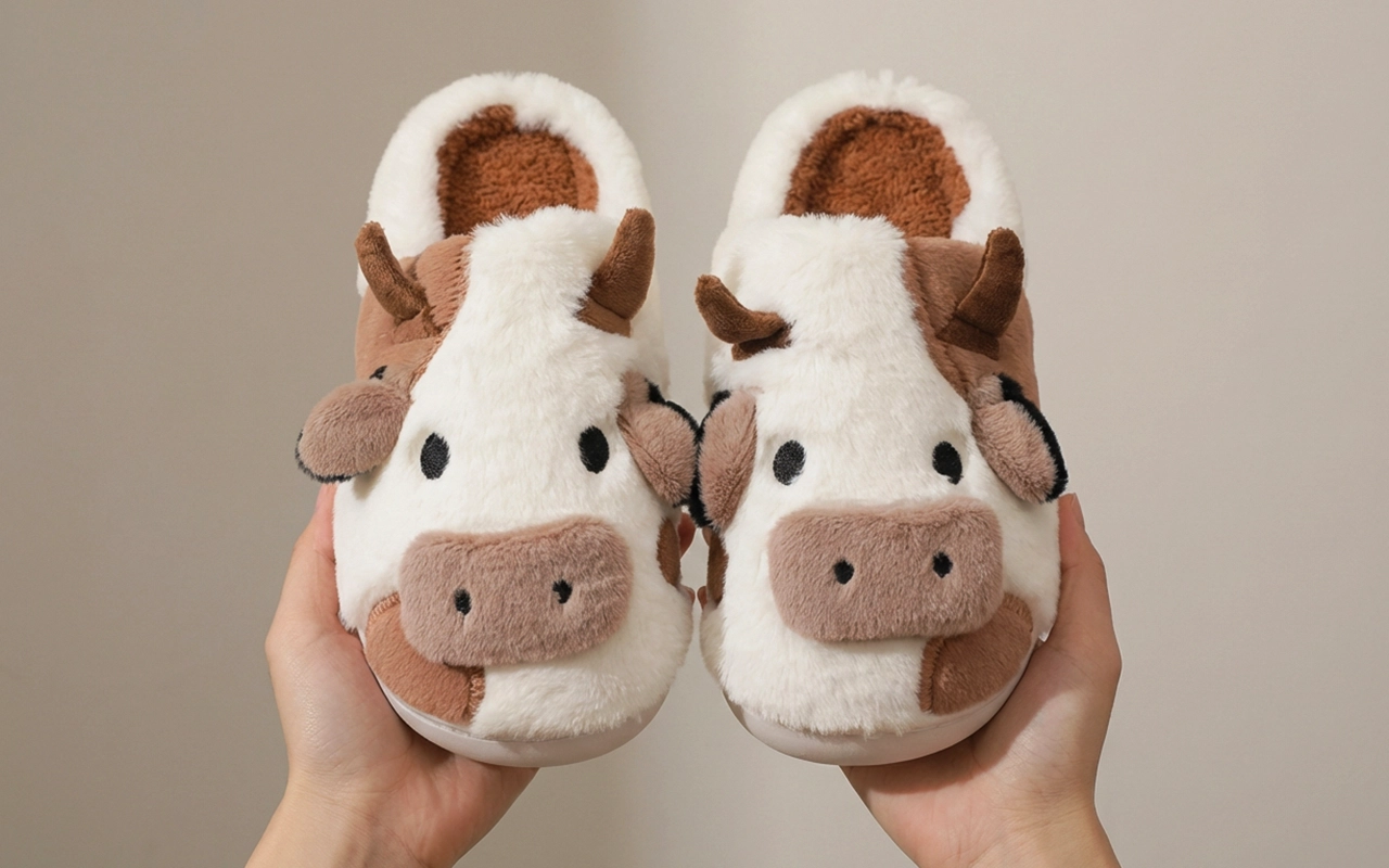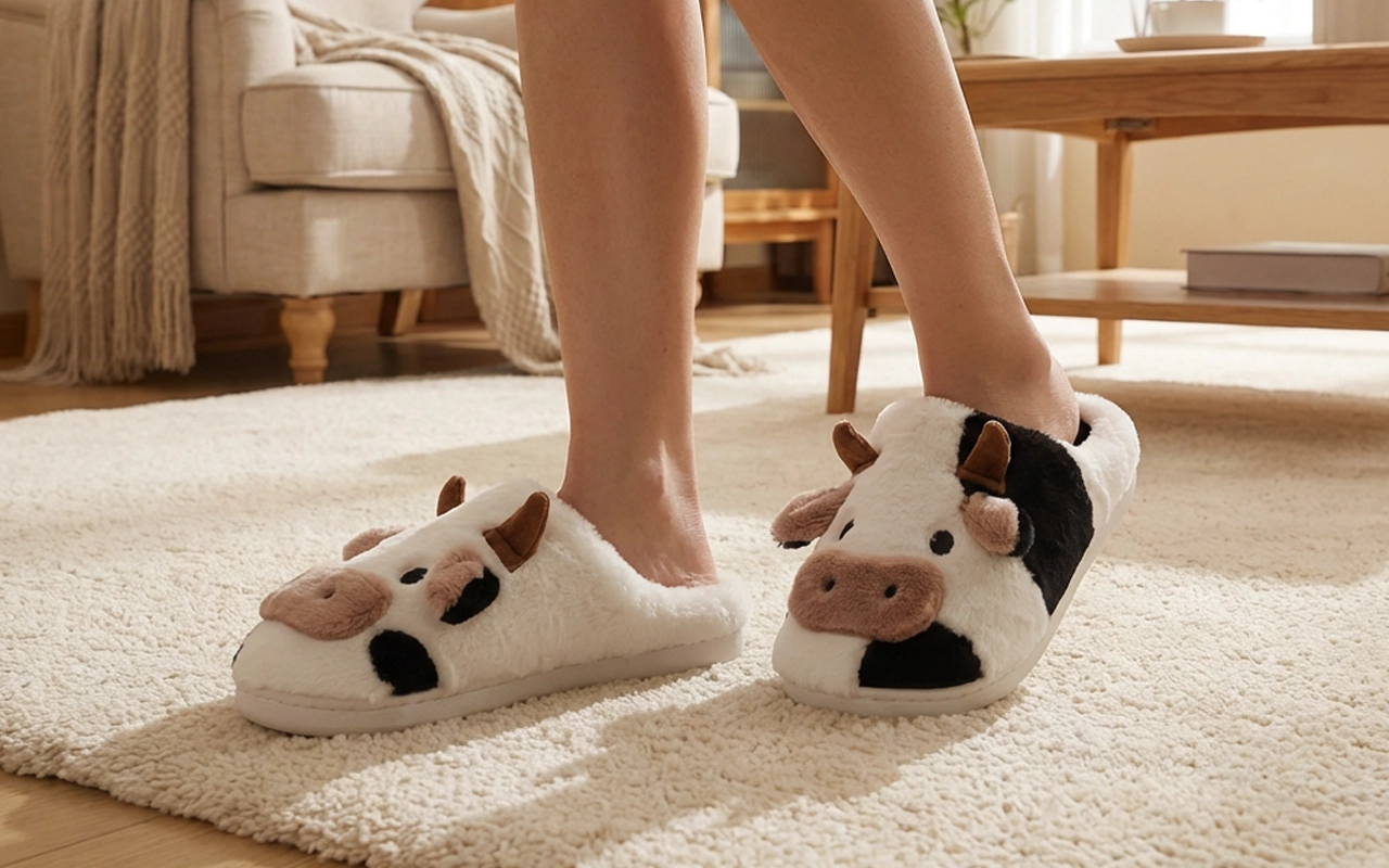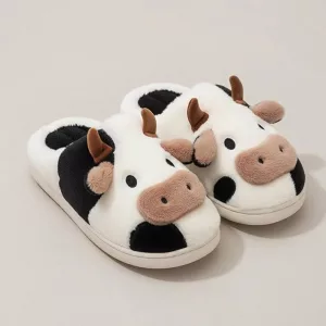 Bekväma kossatofflor är perfekta för att slappa hemma. Min fru och jag matchar i dem, vilket är riktigt kul! Antihalken fungerar bra på våra trägolv.