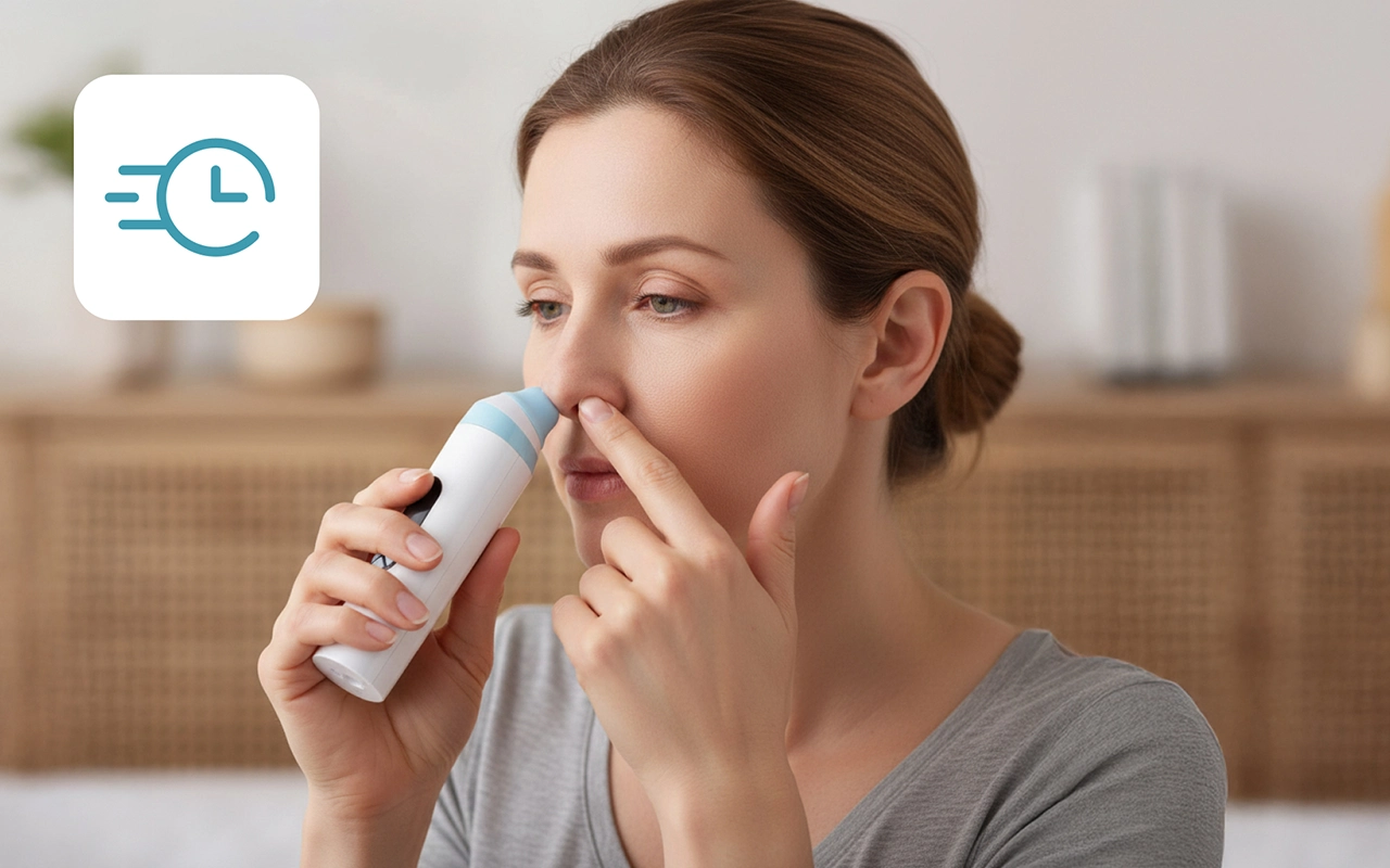 Inga droppar eller proppar behövs för effektiv lindring nu. Tryck bara, håll ned och känn omedelbar lugnande effekt utan krångel.