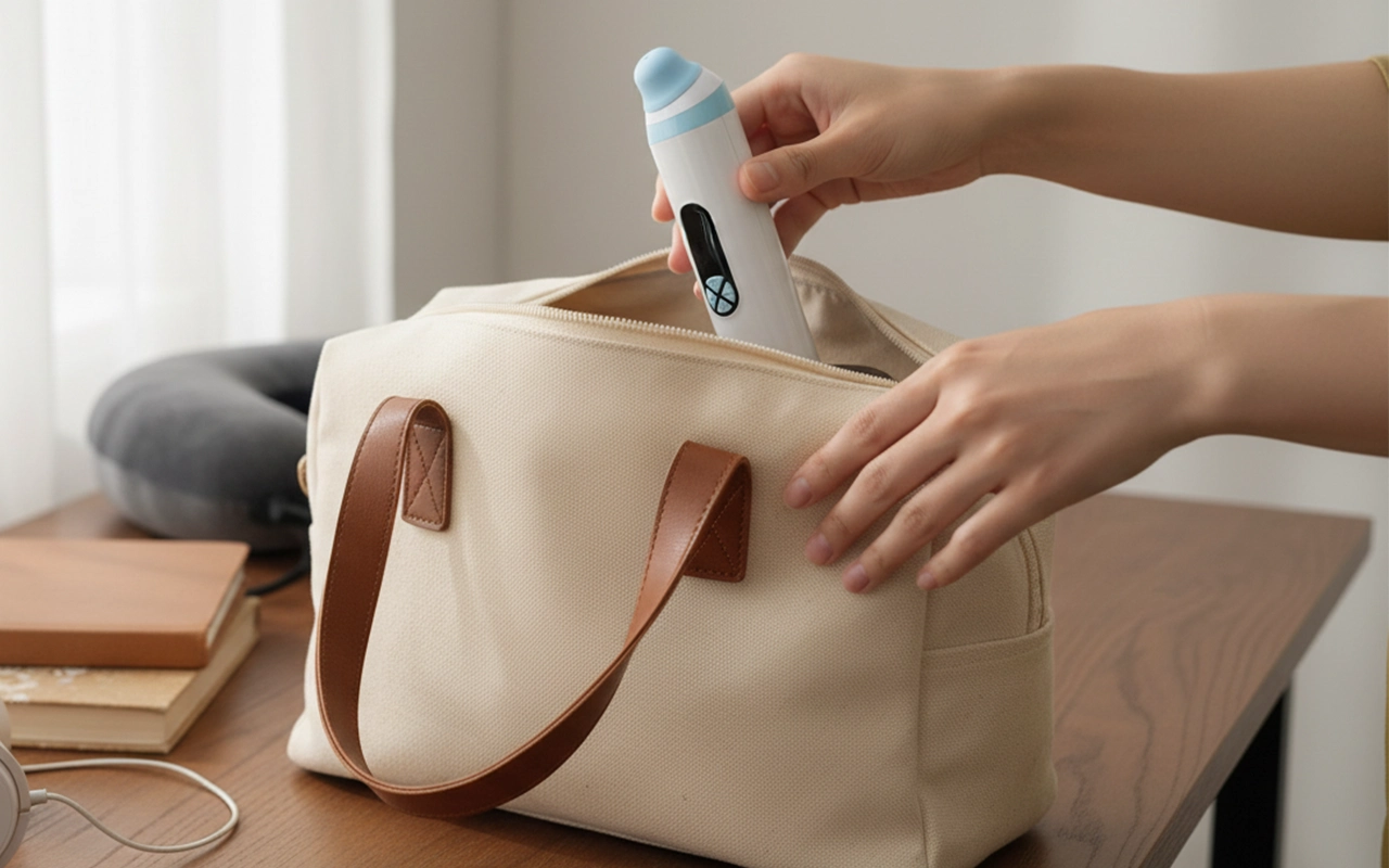 Stoppa enheten i din väska för enkel användning varje dag. Använd den var som helst när trycket ökar; inga extra verktyg behövs.