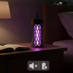 Min man och jag använder den här lampan i vårt lilla sovrum i lägenheten, och det tysta surrandet och det svaga ljuset håller allt lugnt och insektsfritt.