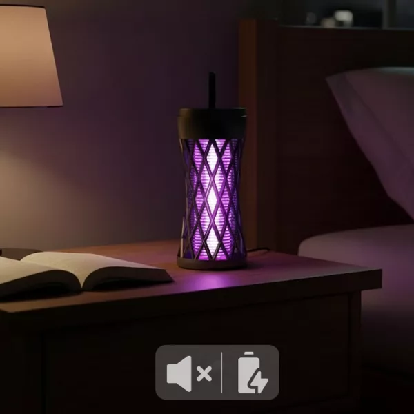 Jag har insektslampan vid mitt skrivbord på kvällarna och den tar tyst hand om flygande småkryp medan jag jobbar utan störande ljud eller lukter.