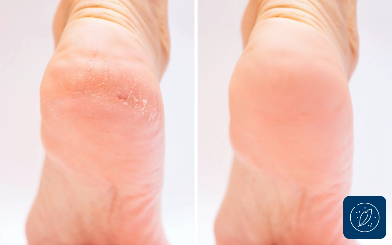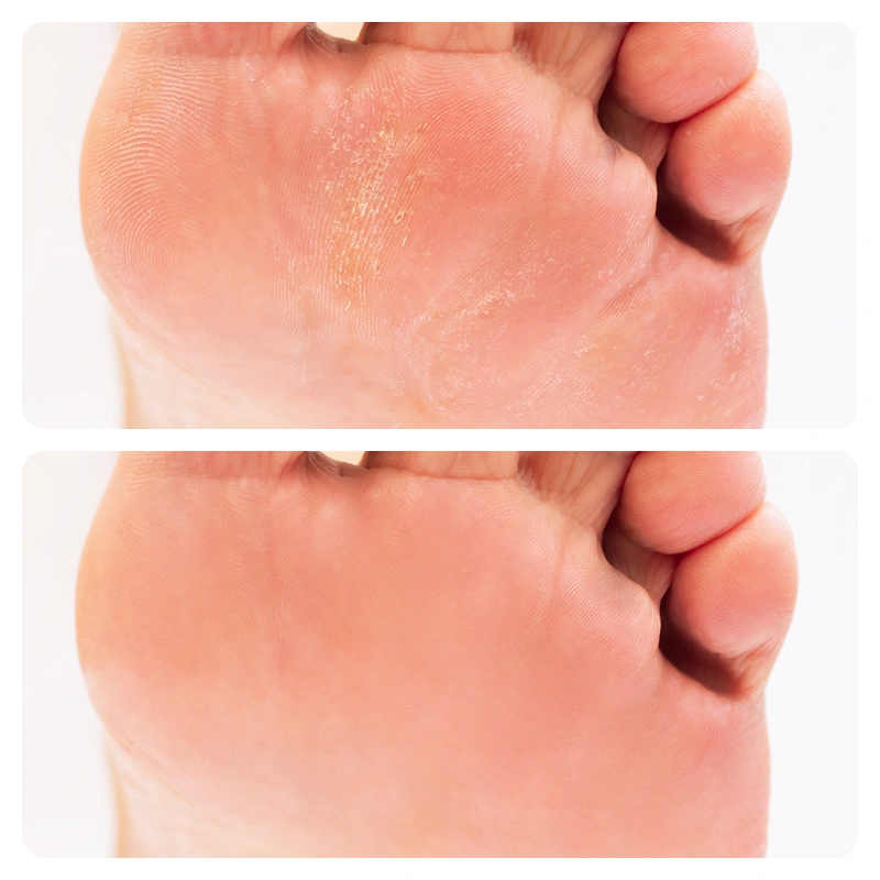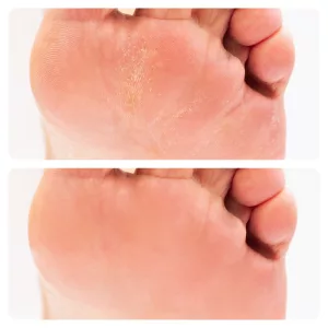 Använde borttagaren på mina spruckna hälar och märkte skillnad direkt. Mina strumpor fastnar inte längre, vilket är toppen.