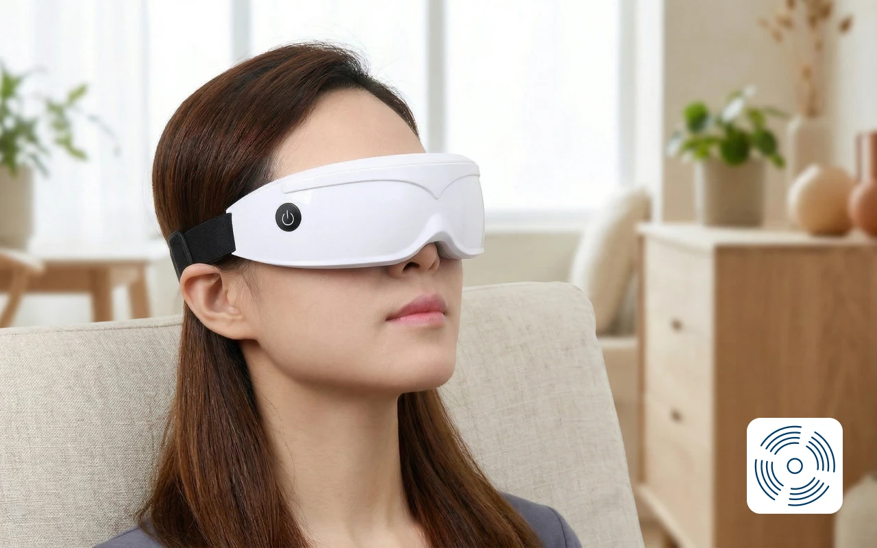 Kraftfulla vibrationer lindrar spänningar runt ögonen. Känn dig enkelt uppfriskad efter läsning, skärmtid eller studier.