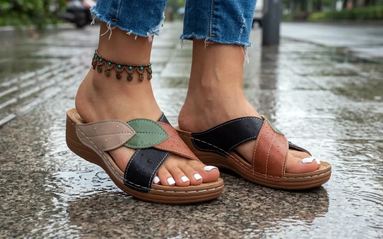 Jag använder dessa sandaler både på jobbet och när jag gör ärenden. Greppet känns säkert på blöta kakelgolv, och de färgglada remmarna piggar upp mina enkla outfits.