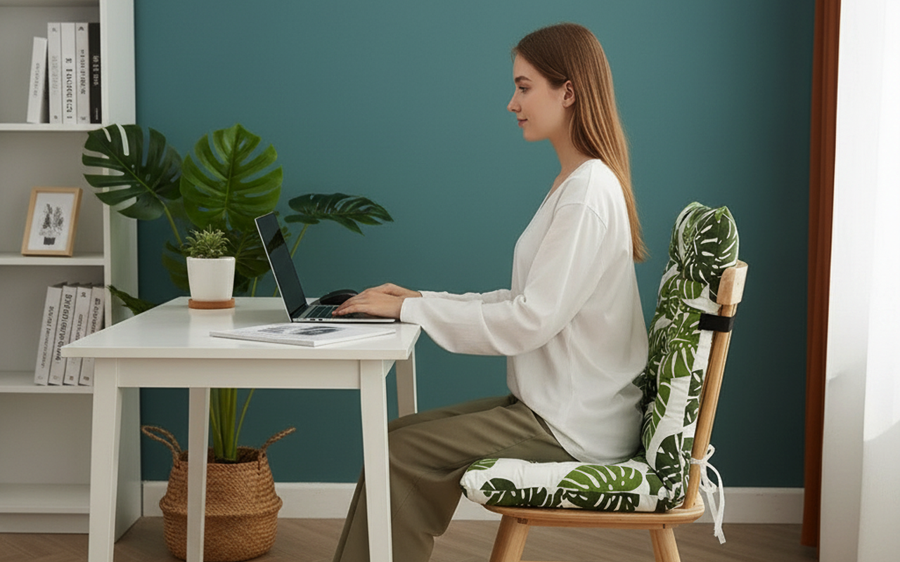 Tog stödet till både kontoret och hemmet. Den omsluter min rygg fint, hjälper mig sitta rakt och ger mjukt stöd under långa studiesessioner.