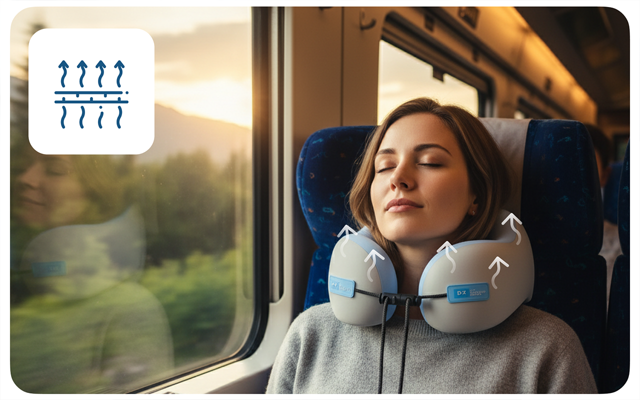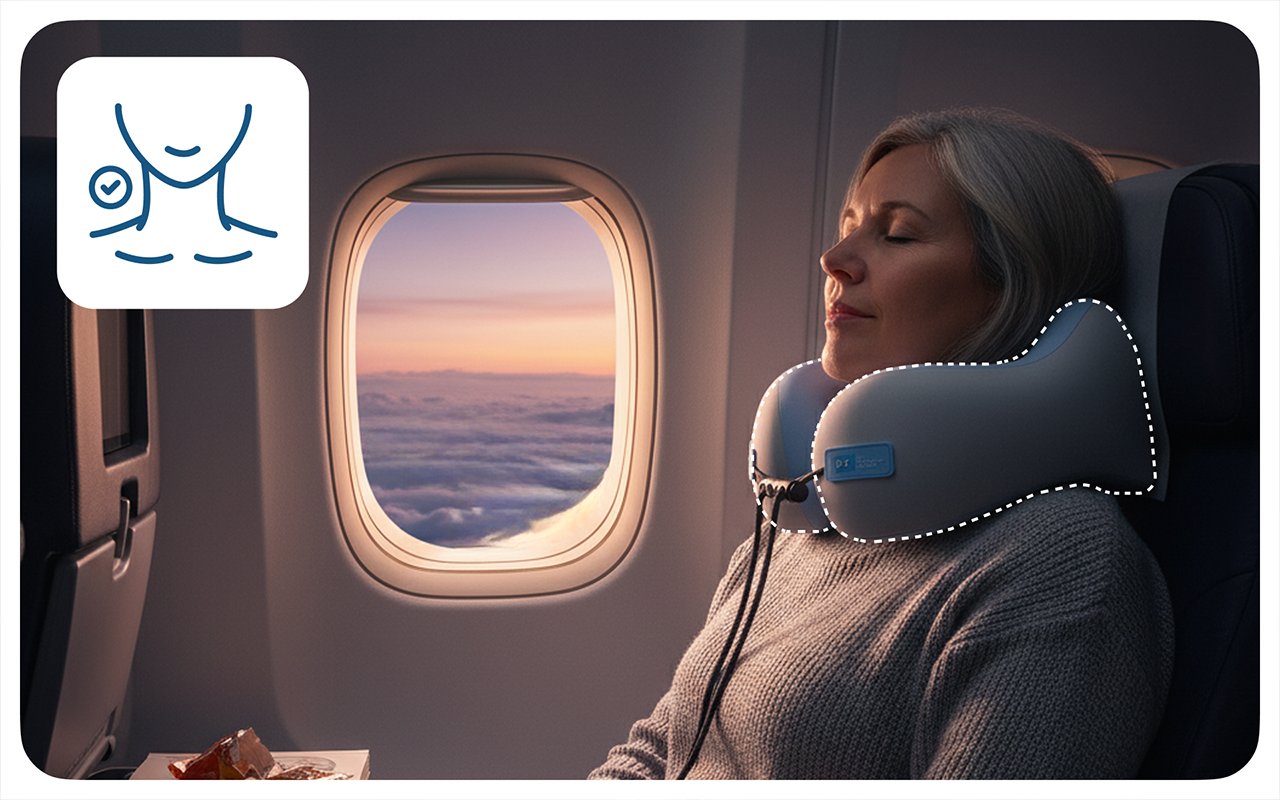 Smarta konturer kramar ditt ansikte och håller din nacke stabil. Du slipper vakna med värk efter att ha sovit upprätt.