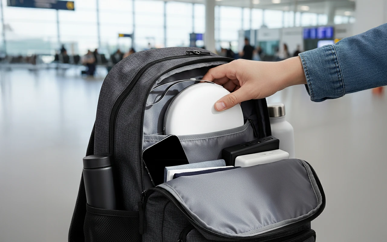 Får plats i ett litet fodral och sparar värdefull plats i väskan. Ta med den överallt, från flygplan till bilresor, utan krångel.