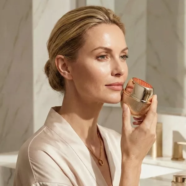 Kunde se en stor skillnad efter en vecka! Min käke ser skarpare ut och mina kinder känns fastare. Jag njuter av det svala ljuset varje kväll före sänggåendet.