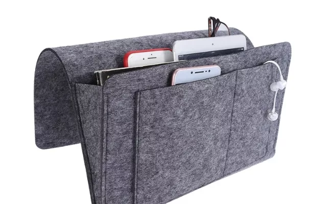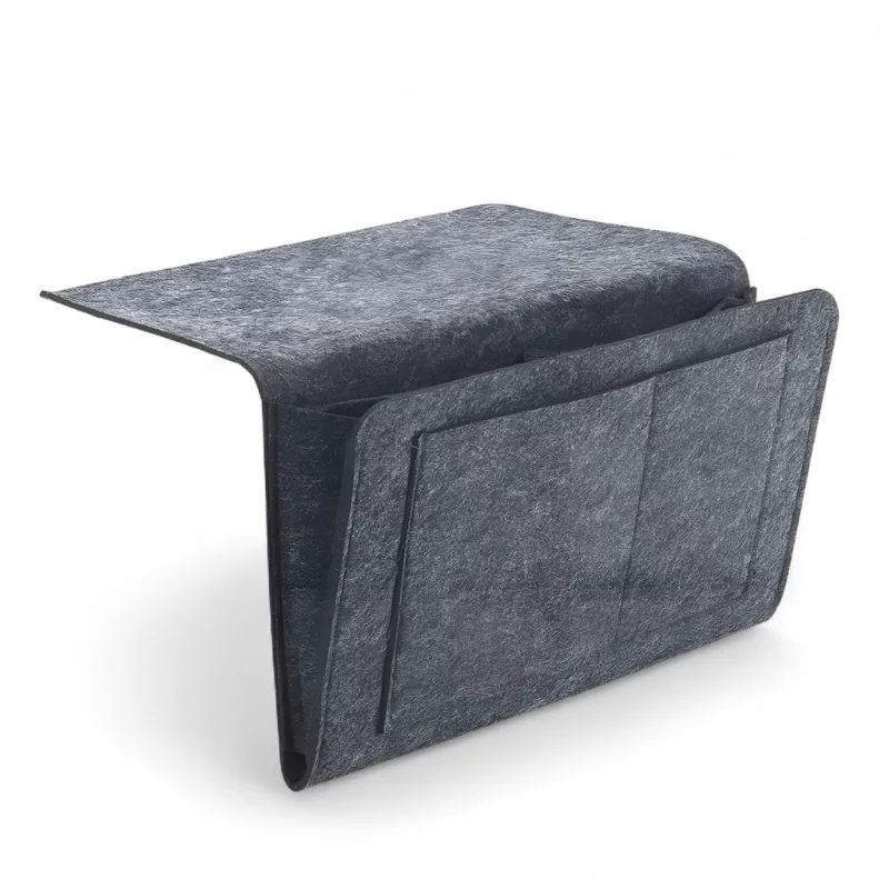Denna caddy känns mjuk vid beröring och repar inte känsliga ytor. Du kan lägga din telefon, surfplatta eller glasögon i den utan oro.