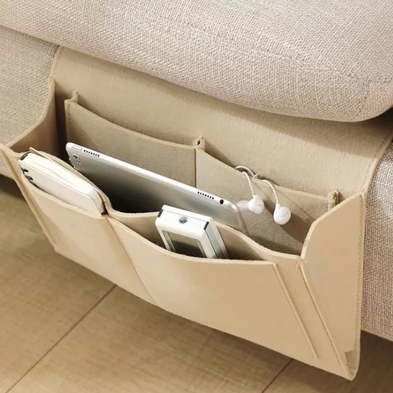 Tappar aldrig bort något vid sängen längre! Rymmer min iPad, hörlurar och till och med ett block. Mjukt tyg så skärmarna inte repas.